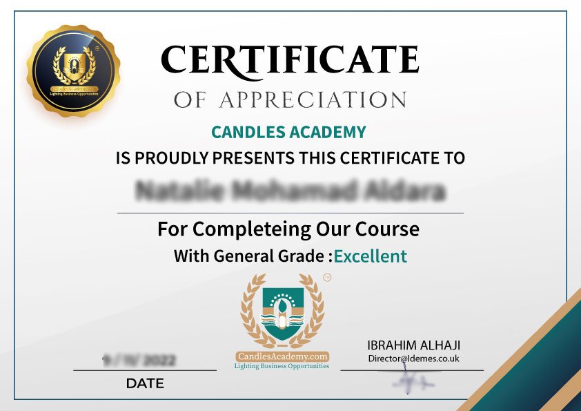 In addition to certified certificates from the international association and Idemes Education Company from London, Candles Academy adopts distance education and offers interactive academic education to master the candles industry through a distinctive curriculum.